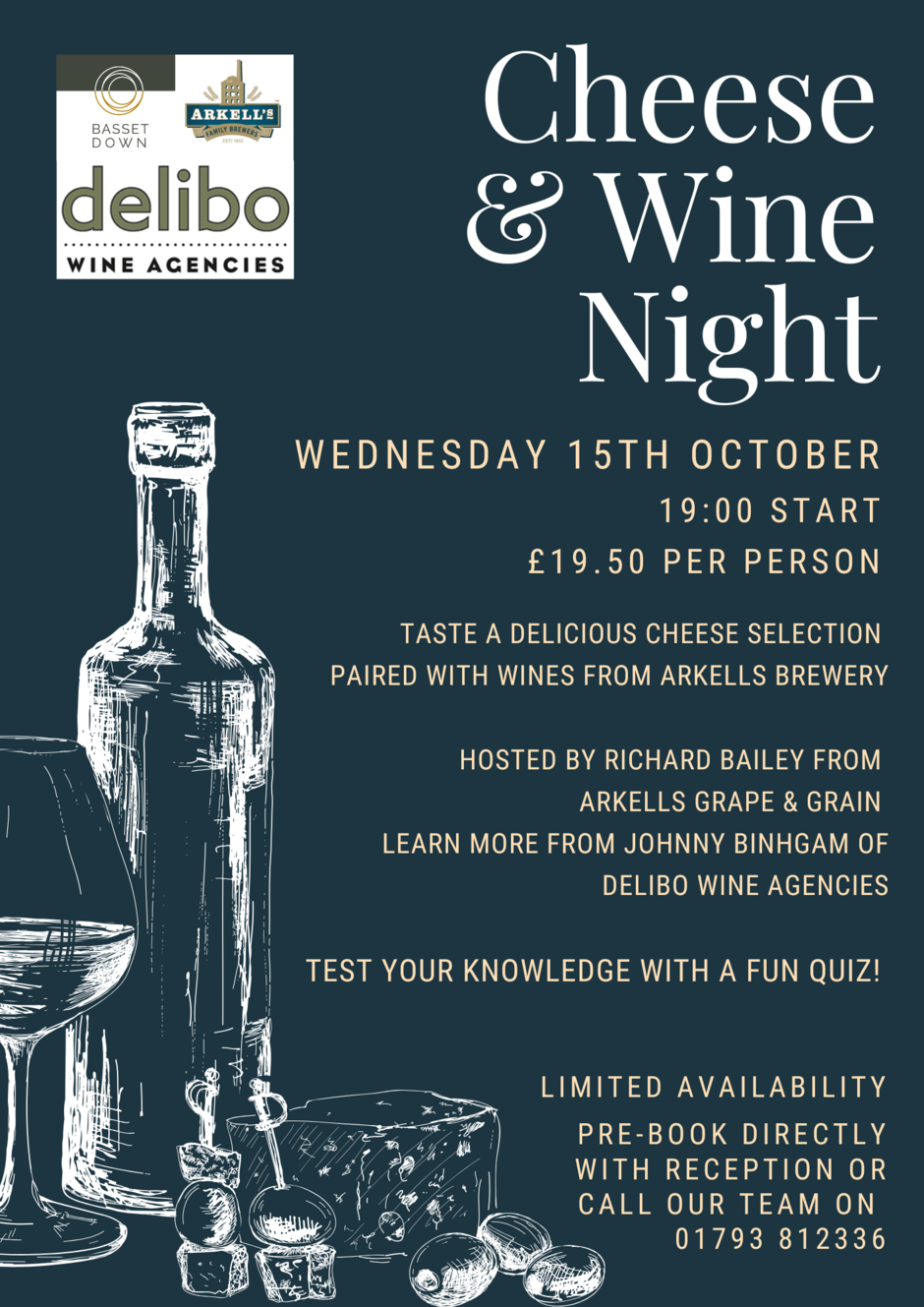 Spaces are limited, so be sure to pre-book directly with reception or call our team on 01793 812336 to secure your spot. Don’t miss this relaxed and sociable evening of great food, wine and company!